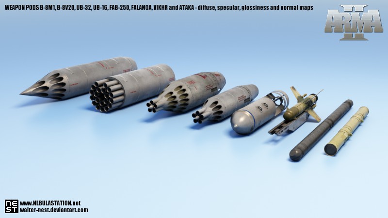 Models for Bohemia Interactive's ArmA II. Diffuse, specular, glosiness and normal maps. Models match the real things down to smallest details.