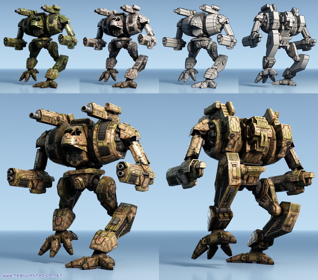 Model for use in MechWarrior4:Mercenaries. 3000 triangles budget, two 512x512 diffuse textures with alpha channel. Alpha is used to blend texture with player-selected camouflage.