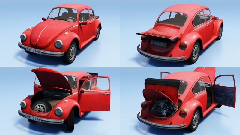 A low-poly car model with interior and all doors openable. 5,000 traingles budget, 512x512 diffuse texture with alpha channel.