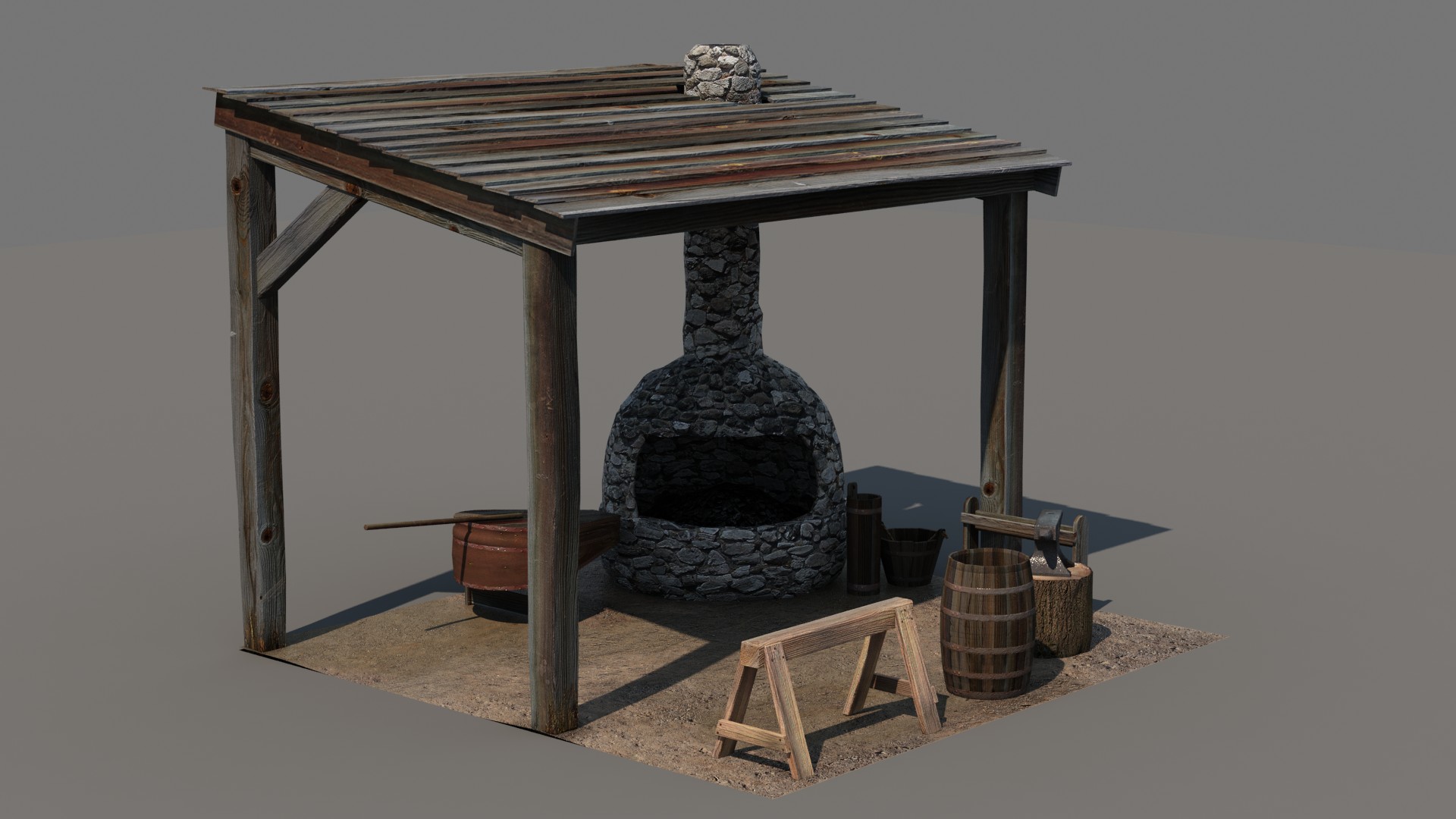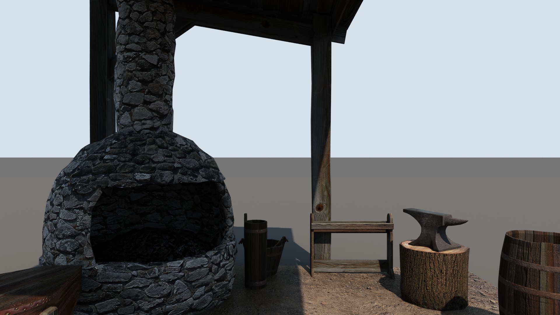 Low-poly model of a blacksmith's forge with diffuse, bump and specular map.