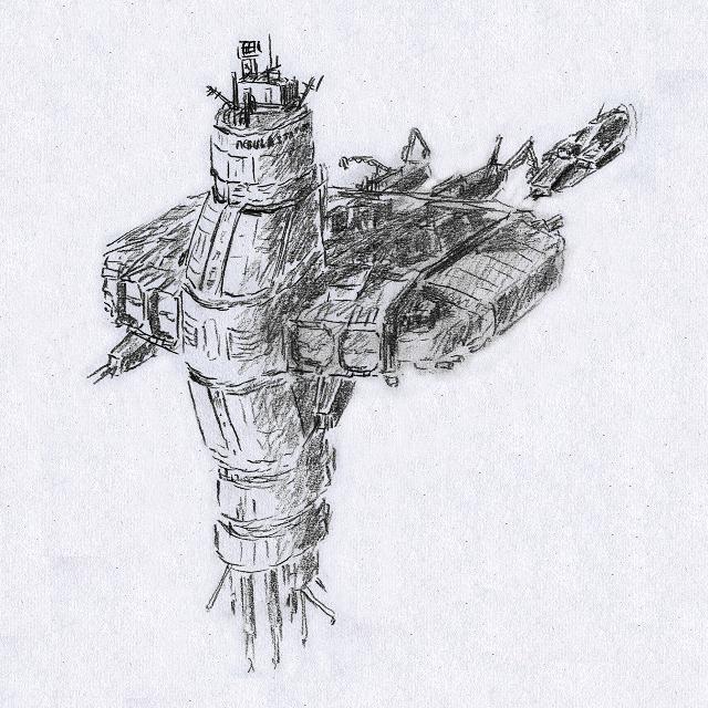 Starship model for Squadron: A Star Trak Fan Production. Model made to closely resemble a physical model used in the production of the TV show.