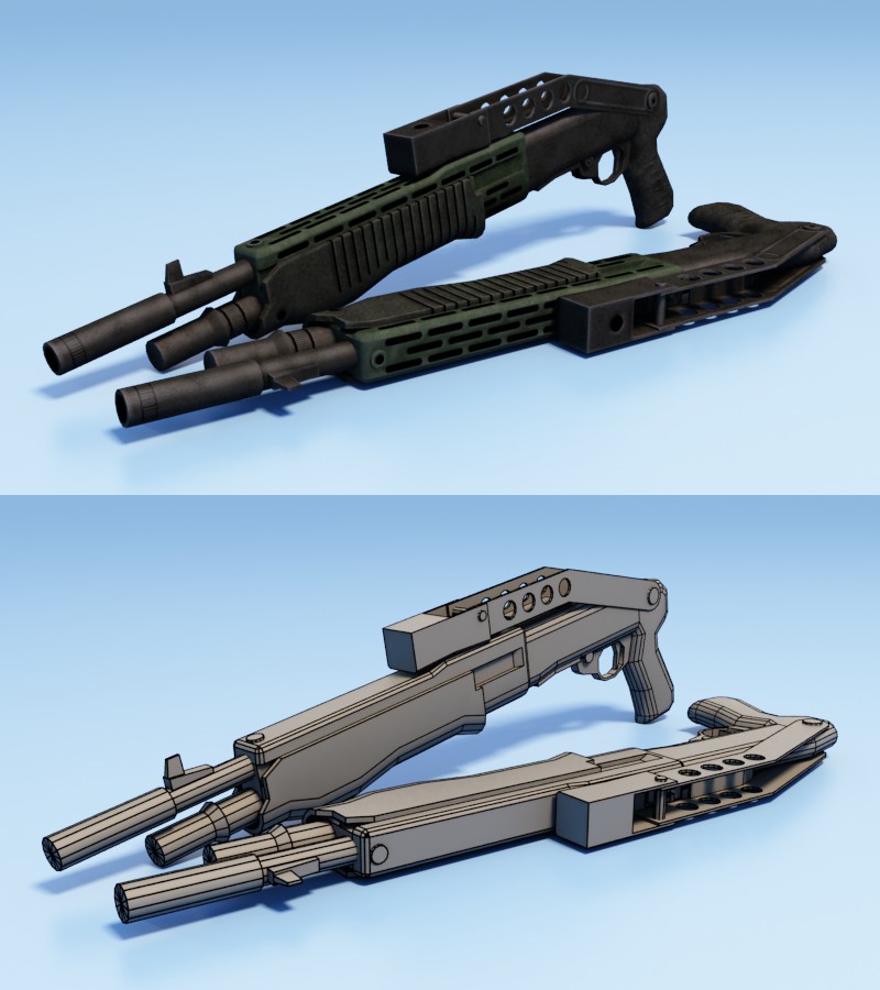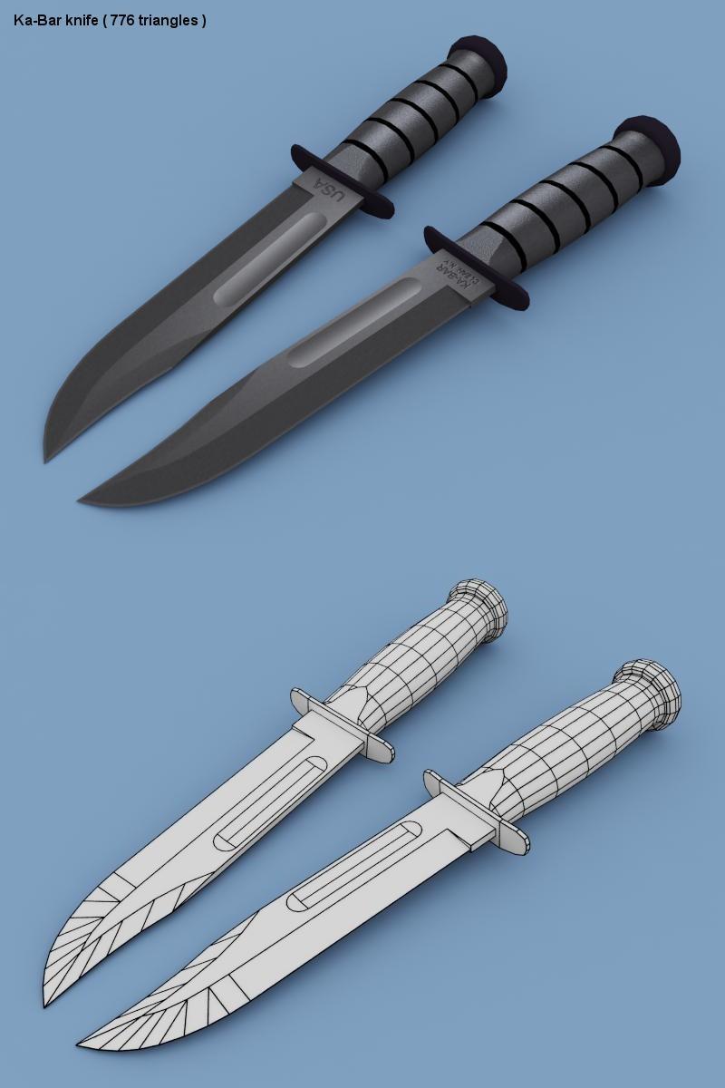 2000 triangles budget, diffuse textures. Franchi SPAS-12 pump-action shotgun and Ka-Bar 1211 army knife.